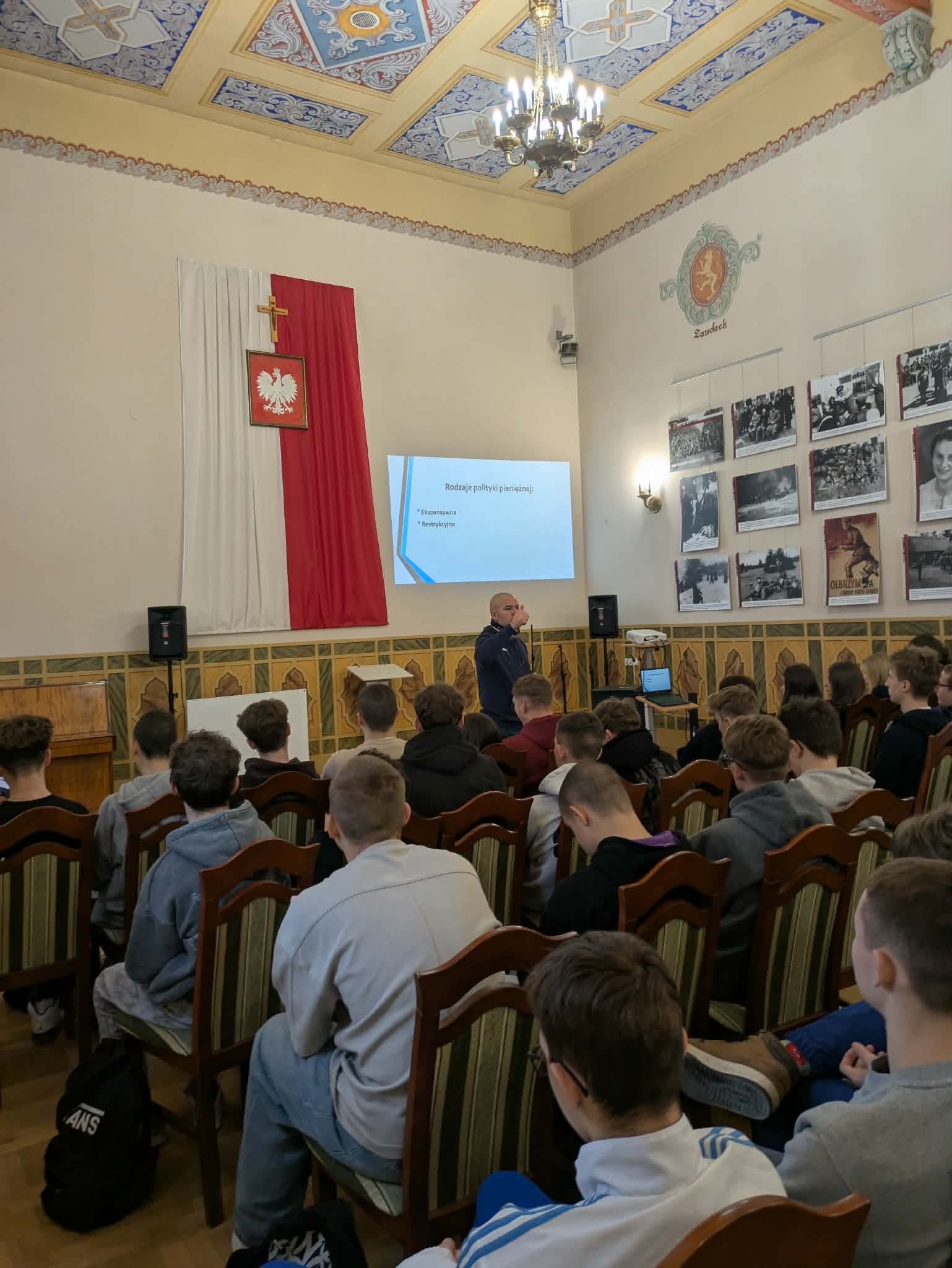 Ważną częścią spotkania były również wskazówki dotyczące tego, jak powinniśmy oszczędzać i inwestować w naszym wieku. Dowiedzieliśmy się też, jak tworzyć budżet osobisty i dlaczego warto kontrolować swoje wydatki. Wykład był ciekawy i pozwolił nam zdobyć przydatną wiedzę na przyszłość.'' Koordynatorem projektu jest pani Sylwia Pierzchała-Ryznar oraz pan Daniel Kruk.