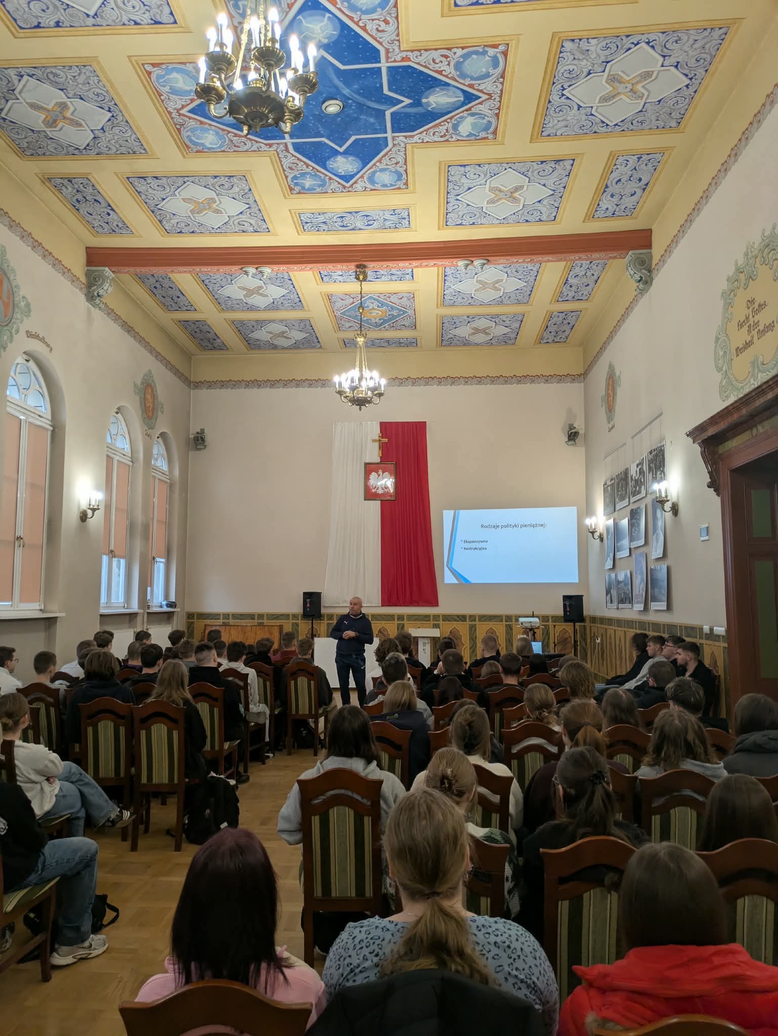 Podczas wykładu zostały poruszone takie kwestie jak kompetencje banku centralnego, czym się zajmuje oraz jakie są jego główne funkcje. Rozmawialiśmy także o tym, jaką politykę pieniężną może prowadzić bank centralny oraz jak działa system pieniężny. Dzięki temu mogliśmy lepiej zrozumieć, jaki wpływ ma on na gospodarkę i codzienne życie.