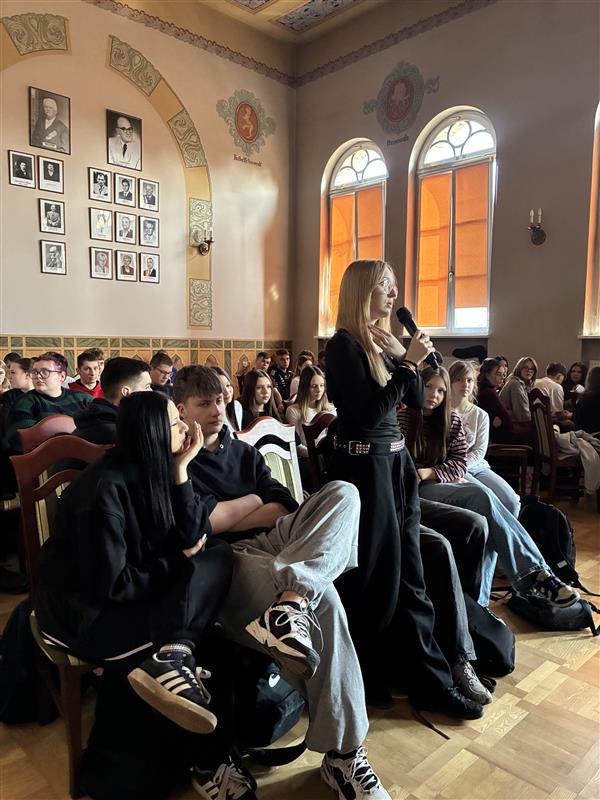 Podczas spotkania uczniowie wcielali się w różne role, prezentując odmienne poglądy ekonomiczne i odpowiadając na pytania dotyczące współczesnych wyzwań gospodarczych. Nie zabrakło ciekawych argumentów, merytorycznej dyskusji oraz odwagi w publicznym wyrażaniu własnych opinii.